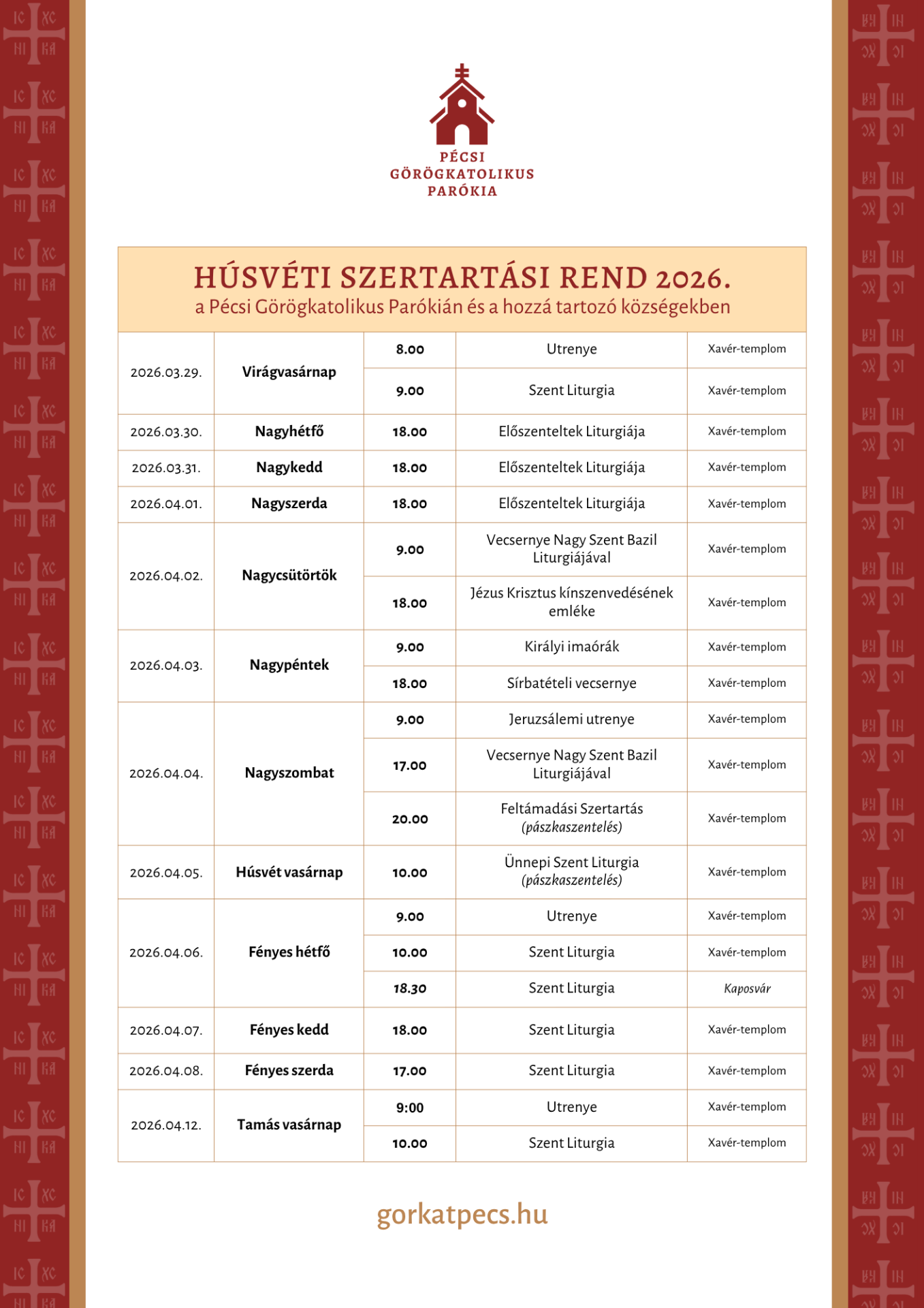 HÚSVÉTI SZERTARTÁSI REND 2026.